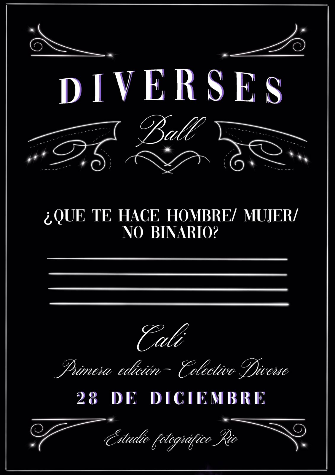 “La Sucursal en Disputa” es un proyecto del Colectivo Diverse (Laura Benítez y Daniela Gómez) que, desde las artes visuales, busca visibilizar y reflexionar sobre la diversidad de género y las identidades no normativas en Cali mediante un evento tipo Ballroom —happening performático inspirado en la cultura queer de Nueva York— como espacio artístico, educativo y seguro donde se cuestionan los roles de género y se promueve la inclusión. A partir de referentes como Simone de Beauvoir, Judith Butler, Guerrilla Girls y el documental Paris is Burning, el proyecto propone romper con los estereotipos binarios y crear comunidad a través del arte, el performance, la moda y el baile. El evento, realizado en Río Studio, reunió participantes de distintas identidades en categorías que exaltan la autenticidad, la expresión libre y la deconstrucción del género, reafirmando al arte como herramienta de resistencia, diálogo y transformación social.